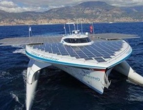 Kapal Turanor PlanetSolar berusaha memecahkan rekor dunia sebagai kapal tenaga surya pertama yang keliling dunia.