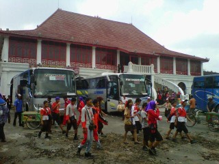 Peserta Jamnas Pramuka mengunjungi Museum Sultan Mahmud Baruddin II Palembang, Rabu (6/7/2011).