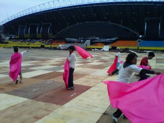 Sejumlah penari pembukaan SEA Games 2011 tes panggung di Stadion Gelora Sriwijaya Jakabaring, Rabu (02/11/2011).