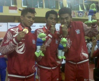 Tim takraw putra Indonesia akhirnya menyumbang emas dalam final nomor double melawan tim takraw putra Myanmar, Senin (21/11)