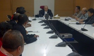 Gubernur Sumsel Alex Noerdin memimpin rapat bersama perwakilan 20 orang perwakilan massa buruh.