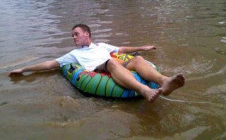 Ternyata, Tom tak kalah menikmati. Dia ikut kegirangan terlentang di atas perahu sambil ditarik Tom. "Mau ke mana?" tanya Tom dengan logat bule.