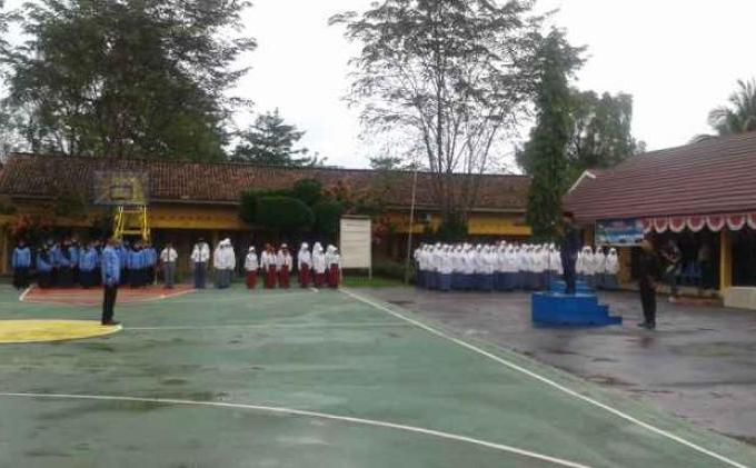 Ia langsung memimpin apel pagi di halaman tengah, meskipun cuaca saat itu sedang mendung.