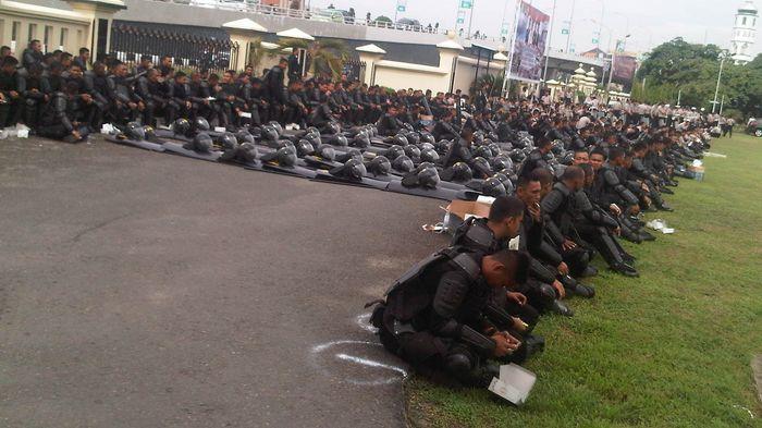 Selain dihadiri segenap anggota Polda Sumsel, tampak juga Polisi Militer, TNI-AD, serta TNI-AU dalam apel gelar pasukan ini.