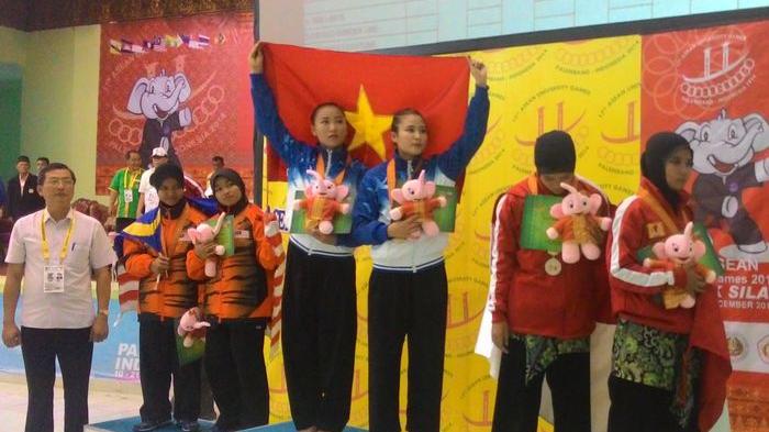 Duo pendekar putri ini total berhasil mengumpulkan 553 poin, kalah satu angka dari peraih medali emas asal Vietnam Dhuong Thi/Nguyen dengan capaian 554 poin.
