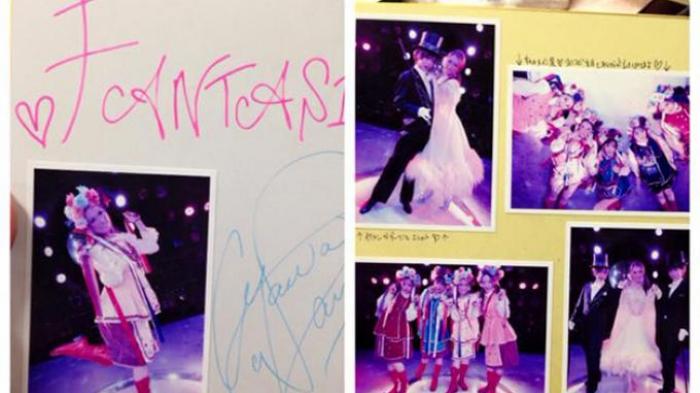 Miyabi tetap tampil berdansa di sana tetapi kali ini dalam pakaian utuh dan cantik, gaun renda-renda bulu-bulu warna putih.