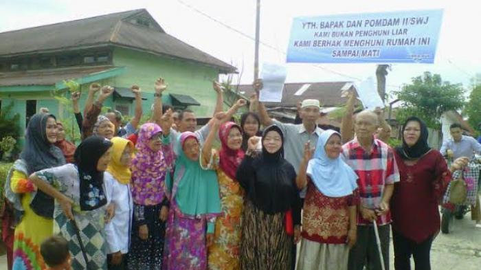 Banner itu dipasang sebagai bentuk protes terhadap Kodam II Sriwijaya terkait surat yang diterima penghuni warga untuk mengosongkan rumah.