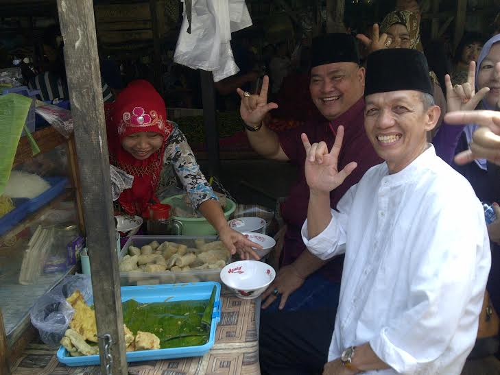 SRIPOKU.COM, PALI --- Dalam kampanye perdana, Pasangan Calon (Paslon) Bupati dan Wakil Bupati Penukal Abab Lematang Ilir (PALI) nomor tiga yakni Eftiyani dan Muchtar Jayadi (Yamu), memilih melakukan blusukan di pasar Talangubi, Kabupaten PALI, Minggu (4/10/2015).