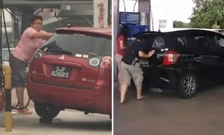 Bahkan, tidak sedikit yang akan mendorong-dorong kendaraannya dari samping untuk memastikan agar tangki bensin terisi sempurna. (Sadam, Sumber : Stomp/Facebook)