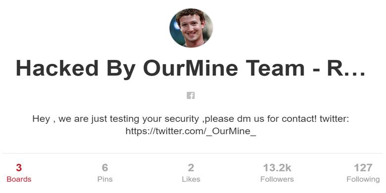 Para hacker turut menampilkan screenshot akun Pinterest Zuckerberg yang telah diambil alih dan diubah namanya menjadi “Hacked by OurMine Team”.
