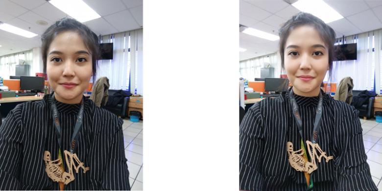 Foto kiri tanpa fitur beautify. Sementara itu, foto sebelah kanan menggunakan fitur tersebut.