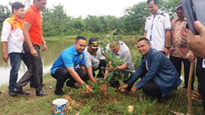 Sebagai bentuk dukungan untuk terus menghijaukan Lahat, KNPI Kabupaten Lahat melakukan penaman pohon di areal kolam retensi Lahat, Sabtu (8/10/2016).