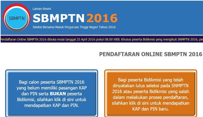 Pendaftaran SBMPTN mulai 11 April sampai 5 Mei mendatang dengan cara membeli pin untuk pendaftaran online di bank yang sudah ditunjuk, Bank Mandiri, BNI, dan BTN.