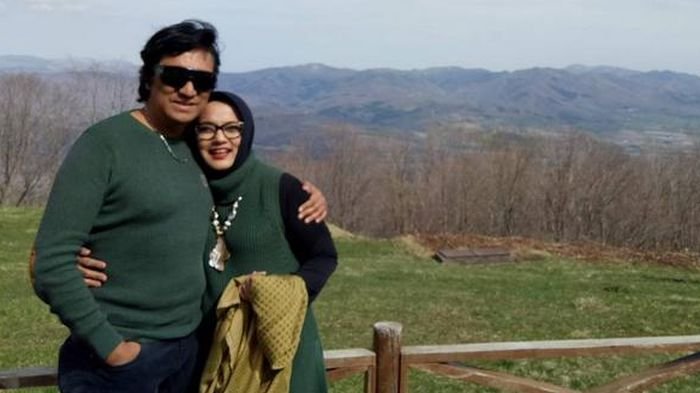 "Indahnya dunia saat dalam pelukanmu Love @ikangfawzi. Terimakasih banyak untuk semuanya. I love you more than everyone else's knows... Fabiayyi ala'i Robbi kumma tukadzdzibaaaan. Arigatoooo Ya Allah (Marissa Haque Ikang Fawzi)."