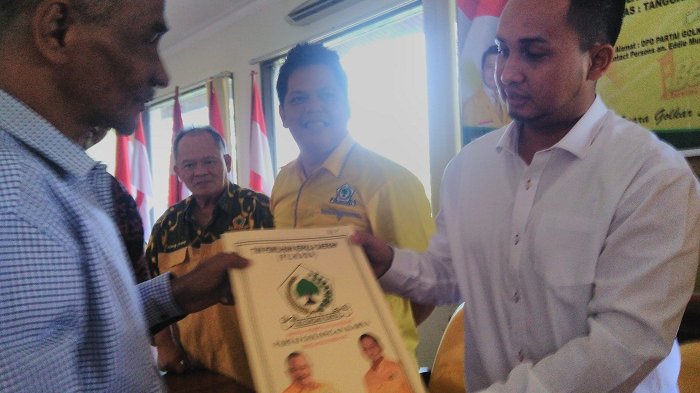 Kali ini Ketua DPC PDI Perjuangan Kota Palembang Zulfikri Kadir mengambil formulir bakal calon walikota Palembang ke partai Golkar.