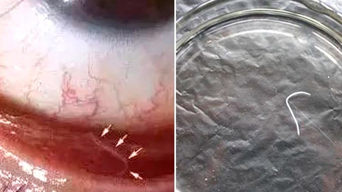 Setelah diperiksa, dokter menemukan cacing sepanjang 2cm di bola matanya.