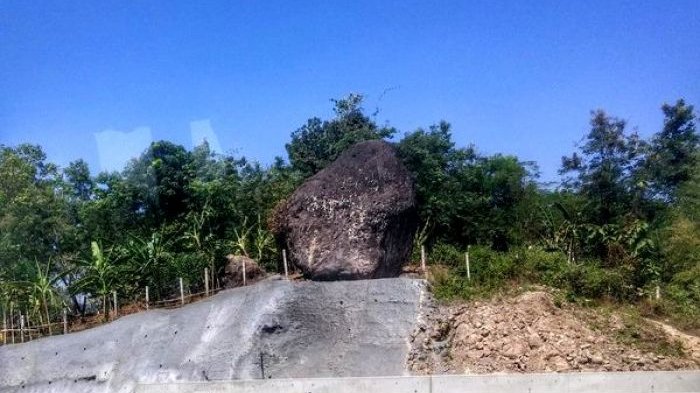Batu Besar di Pinggir Jalan Ini Tak Bisa Dihancurkan atau Dipindahkan, Benarkah Batu Keramat?