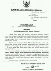 Oleh karena itu, Bupati OKU Selatan menerbitkan Surat Edaran Nomor : 973/324/BPPPRD/2017 Tentang Lintasan Jaringan Kabel Listrik, yang memberitahukan kepada seluruh lapisan masyarakat terutama para pemilik kebun yang pohonya menganggu lintasan kabel listrik untuk memapas pohon yang menganggu Kabel listrik tersebut.