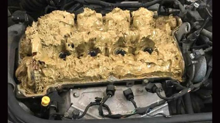 Tidak hanya bagian ruang atas mesin, cairan tersebut juga sampai memenuhi sektor bawah serta saluran-saluran yang ada di dalam mesin. Kondisinya sangat memprihatinkan sehingga mekanik pun hanya bisa memberikan dua pilihan pada wanita tersebut, yakni menjual mobil, atau membeli mesin baru.