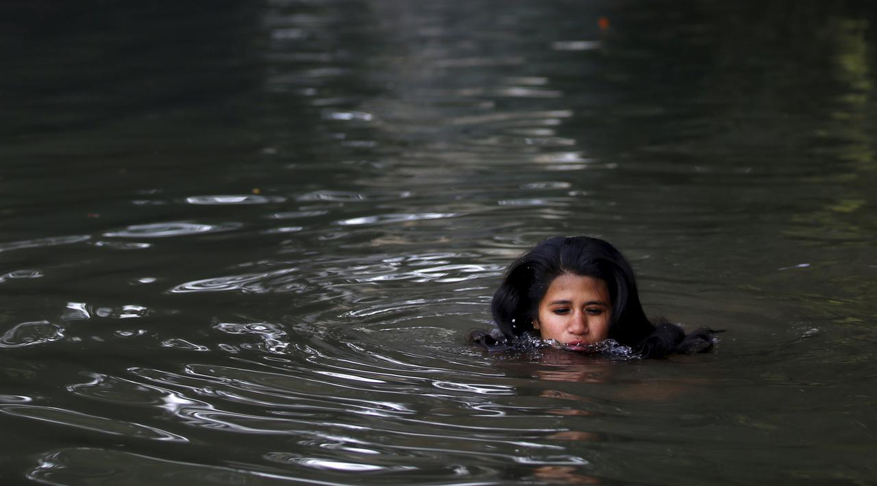 Wanita ini kemudian mandi di sungai sesuai tradisi masyarakat di sana.