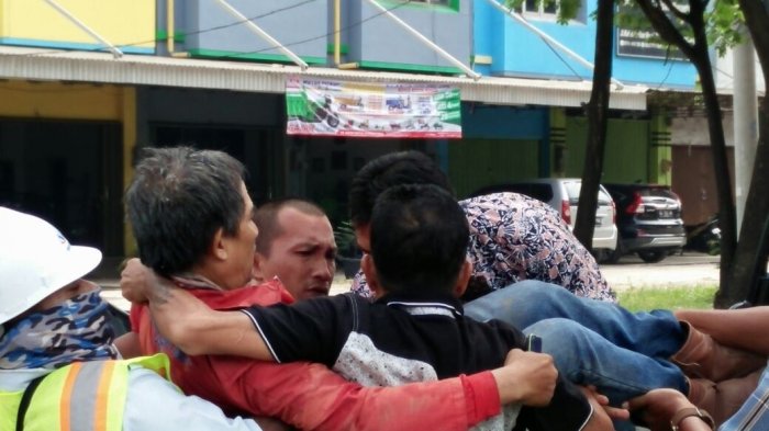 Sehingga alat berat pun melindas bagian betis korban dan korban langsung tertelungkup kedepan. Sontak pekerja lain pun berteriak dan nyawa korban pun terselamatkan walaupun kakinya tak bisa digerakkan diduga mengalami patah tulang.