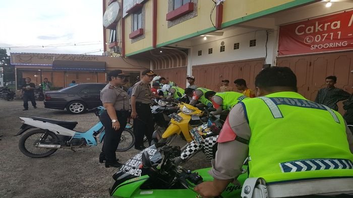Belasan motor balap liar berhasil diamankan tim gabungan dari Satlantas Polresta bersama Polsek IT II dan Polsek Kalidoni Palembang.