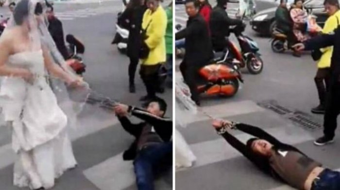 Calon Pengantin Wanita Ini Ikat Tangan Calon Suaminya dan Menyeretnya ke Lokasi Pernikahan