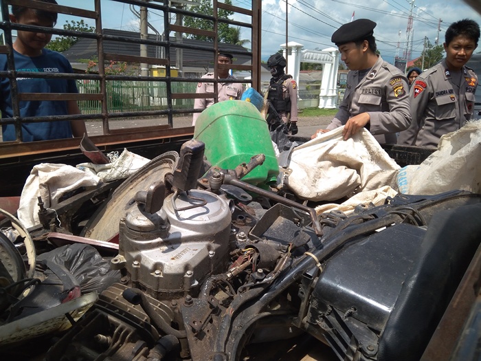 Sementara polisi mendapati satu kendaraan pick - up bermuatan mesin sepeda motor yang sudah dipreteli hanya ada mesin dan jok dan sepedo meter.