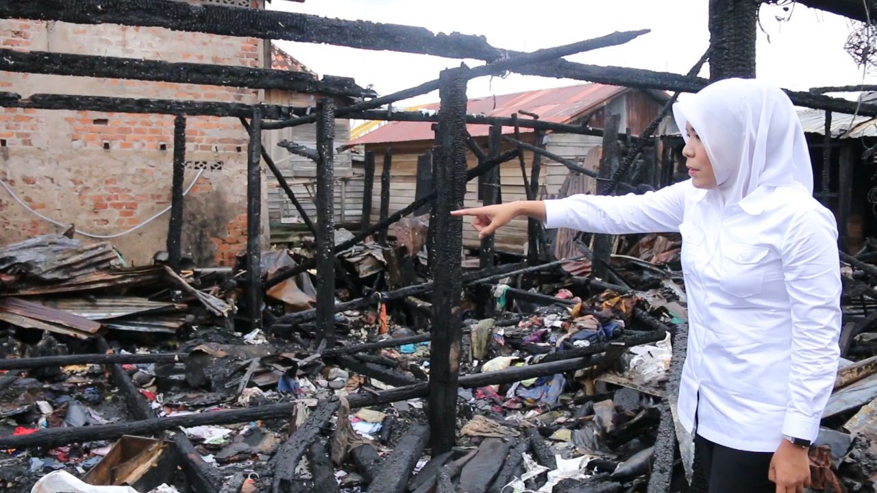 PALEMBANG, SRIPO -- Wakil Walikota non aktif, Fitrianti Agustinda, terenyuh melihat kondisi bekas kebakaran di Jalan Pintu Besi Kelurahan Ogan Baru,