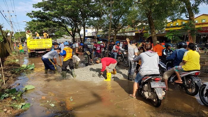Dilakukan penutupan lubang dengan kerikil dan juga pembersihan saluran air.