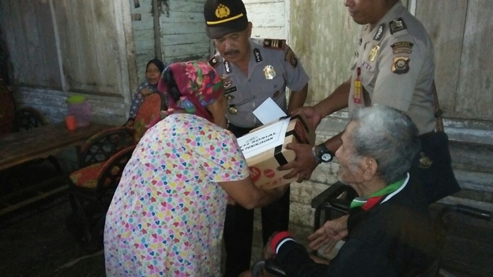 Dikesempatan itu Kata Kapolsek mereka juga memberikan bantuan berupa kebutuhan pokok seperti susu, minyak sayur, gandum, mie instan dan uang tunai.