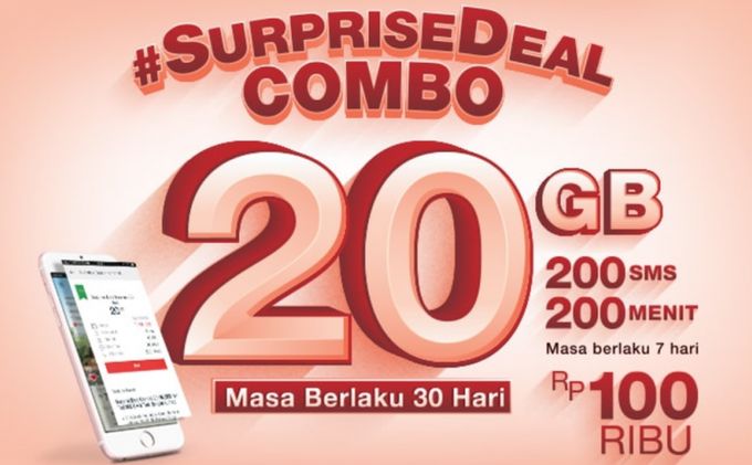 Perlu dicatat, kuota internet 20 GB dari #SurpriseDeal tak dibatasi dengan pembagian kuota, baik berdasarkan jenis maupun waktu penggunaan. Seluruh kuota bisa digunakan pada jaringan 2G, 3G, dan 4G untuk apa saja dan kapan saja.