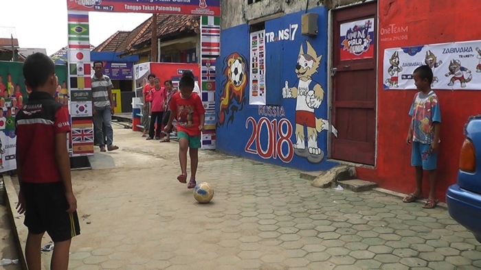 "Kami serasa menjadi Messi dan Ronaldo yang bertanding di Piala Dunia 2018," ujar seorang anak yang tengah bermain sepakbola di kampung tersebut.