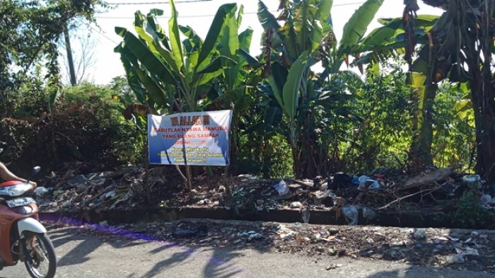 Lantaran dijadikan sasaran lokasi tempat warga membuang sampah, untuk itu masyarakat sekitar memasang spanduk