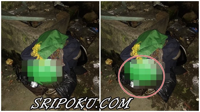 Dari foto tersebut terlihat beberapa benda yang berada di sekitar helm, seperti jaket, tas coklat dan sebuah benda yang cukup mencurigakan warga sekitar.