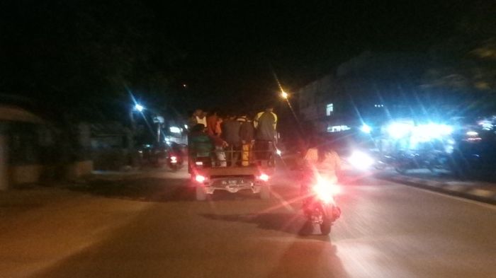 Sejumlah kendaraan yang melintas terlihat membawa beduk maupun speaker dan toa untuk mengumandangkan takbir keliling yang sudah menjadi tradisi setiap tahun.