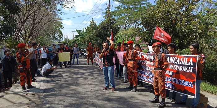 SRIPOKU.COM, LAHAT - Puluhan anggota MPC Pemuda Pancasila Kabupaten Lahat, bersama elemen masyarakat, Rabu (20/6/2018) menggelar aksi damai di depan kantor KPU Lahat.