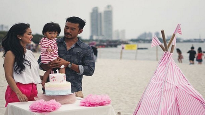Rio dan Atiqah terlihat mengadakan pesta ulang tahun Salma secara sederhana di sebuah pantai di Jakarta.