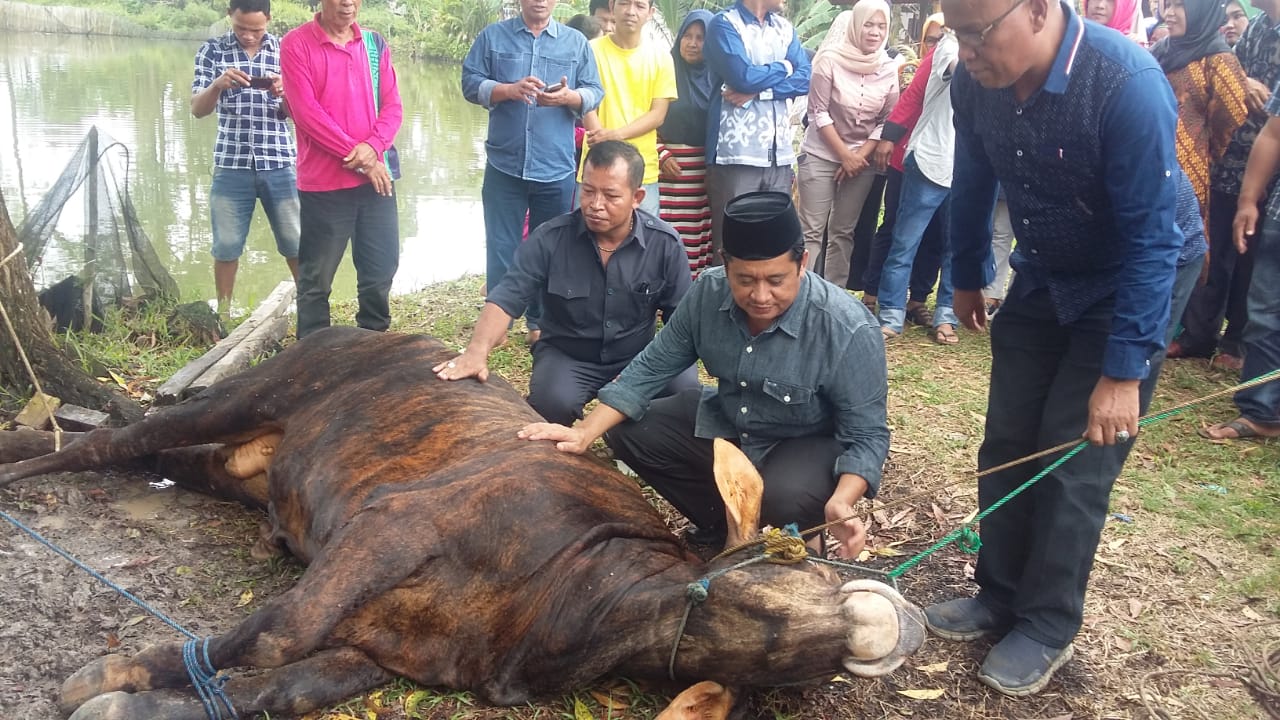 SRIPOKU.COM - Unggul sementara hitung cepat pilkada Banyuasin, Askolani, SH membayar nazar potong sapi, kamis (28/6/2018)
