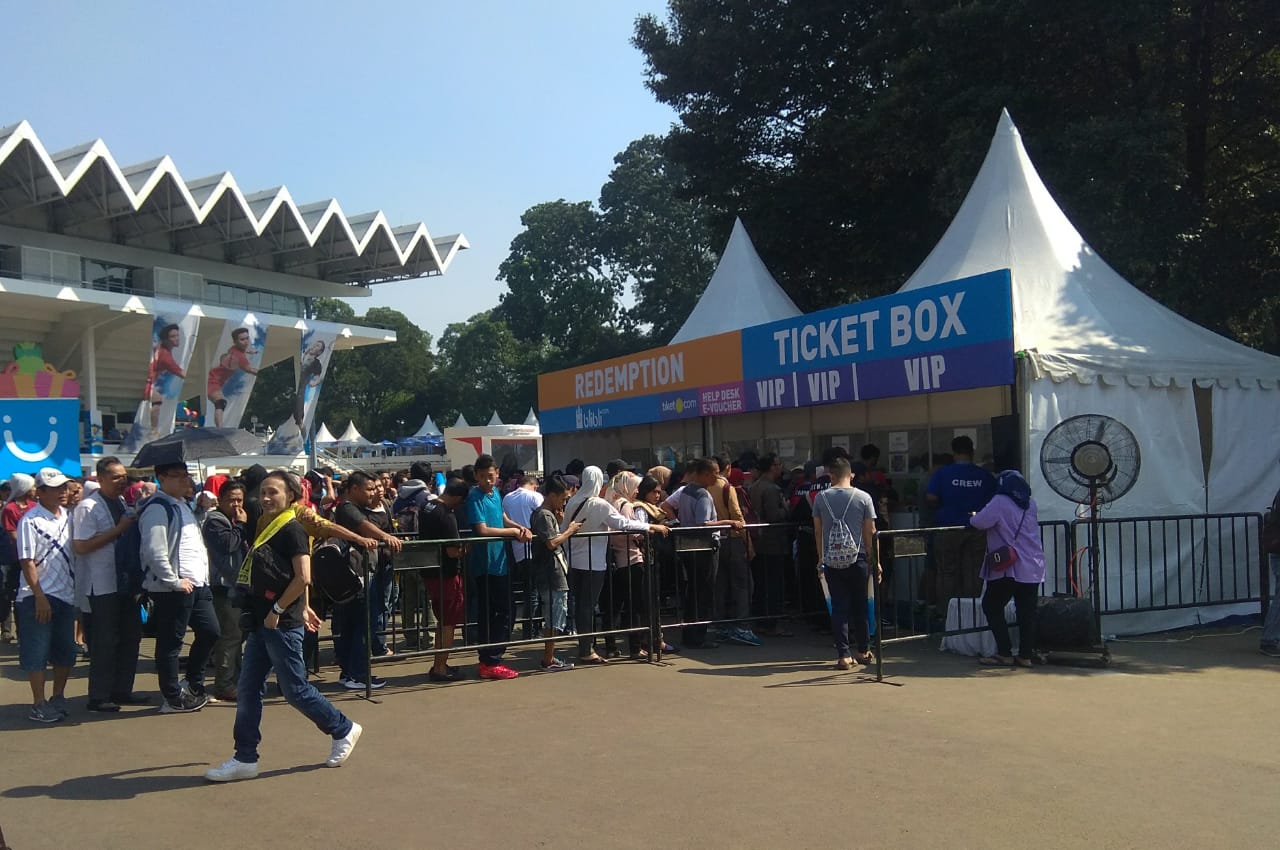 Antusias masyarakat pun terlihat pada ratusan penonton rela mengantre tiket untuk menyaksikan laga Final Blibli Indonesia Open 2018.