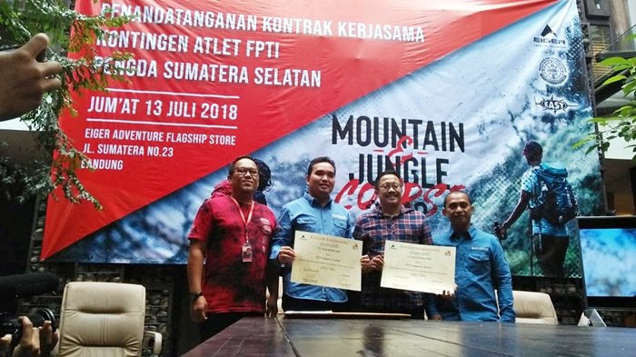 SRIPOKU.COM, PALEMBANG -- Federasi Panjat Tebing Indonesia (FPTI) Sumatera Selatan (Sumsel) untuk pertama kalinya menjalin kerjasama strategis dengan Eiger.