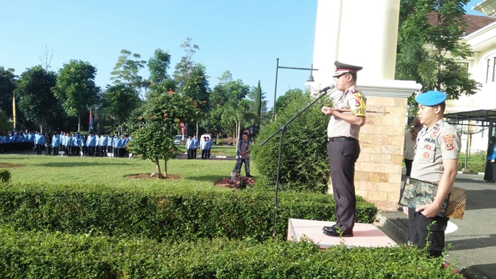 Kapolres Pagaralam, AKBP Dwi Hartono SIk MH menjadi irup pada Apel Gabungan, Selasa (17/7/2018) di lapangan Kantor Walikota Pagaralam.