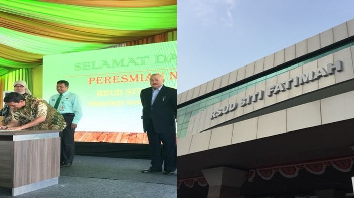 SRIPOKU.COM, PALEMBANG -- Gubernur Sumatera Selatan (Sumsel) Alex Noerdin meresmikan pergantian nama Rumah Sakit Umum Daerah (RSUD) Provinsi Sumatera Selatan (Sumsel) menjadi RSUD Siti Fatimah di jalan Koloner H Burlin KM 6, Senin (17/9).
