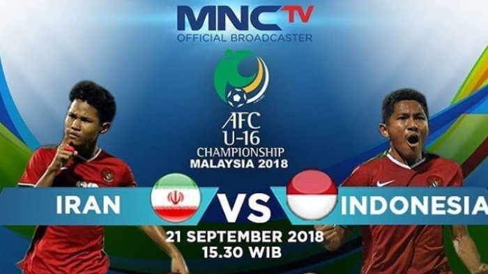 PERTANDINGAN INDONESIA VS IRAN DI AJANG PIALA AFC U-16 2018 AKAN DISIARKAN SECARA LANGSUNG DAN LIVE STREAMING MELALUI MNC TV.