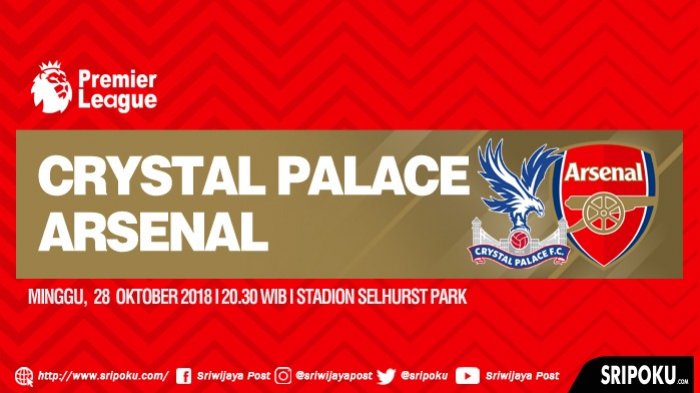 Dilansir dari Banjarmasin Post, pertandingan Crystal Palace vs Arsenal akan dimulai pada Minggu (28/10/2018) pukul 20.30 Wib.