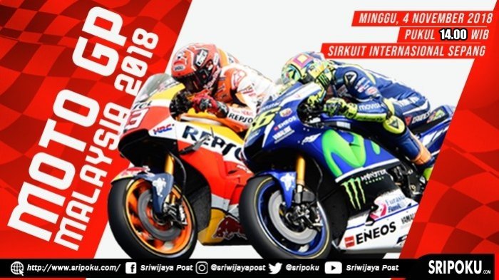 SRIPOKU.COM -- Siaran langsung dan jadwal live streaming Moto GP Malaysia 2018 akan berlangsung di Sirkuit Sepang dan akan disiarkan Trans 7 pukul 12.00 WIB, Minggu (4/11/2018).