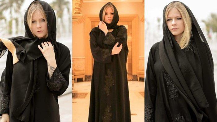 Tak tanggung-tanggung, Avril Lavigne mengunggah 3 fotonya yang sedang mengenakan gamis berwarna hitam dibalut pasmina warna senada.