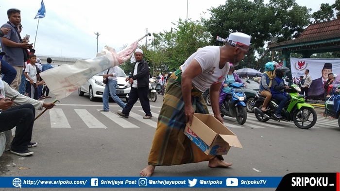 Massa Prabowo-Sandi Sigap Kumpulkan Sampah di Sepanjang Jalan Merdeka Palembang