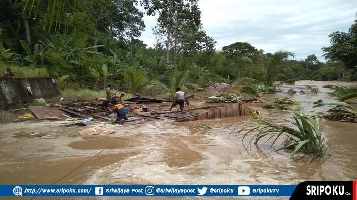 Air Sungai Musi di Paiker Empatlawang Mendadak Meluap, Jembatan Roboh, Rumah Warga dan Gudang Hanyut