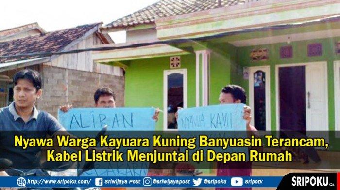 SRIPOKU.COM, BANYUASIN-- Nyawa warga RT 01 RW 01 Kelurahan Kayuara Kuning Kecamatan Banyuasin 3 Kabupaten Banyuasin terancam, pasalnya aliran tinggi kabel listrik menguntai di atas kepala, Selasa (18/6/2019).